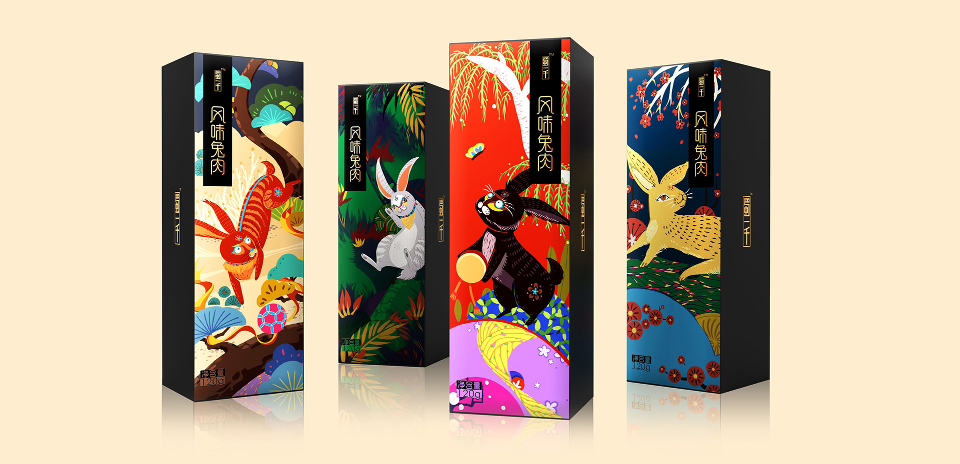 好的包裝會說話,好看的包裝更會說“動人的話”!圣智揚為“蜀一千”創(chuàng)作的風味兔肉系列插畫,風格新穎、顏值不凡,超出了客戶的預(yù)期,并成為市場上同類產(chǎn)品的經(jīng)典之作。